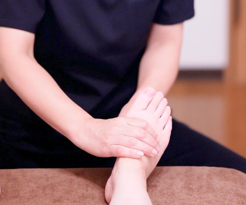 足裏の反射区を丁寧に刺激しながら、