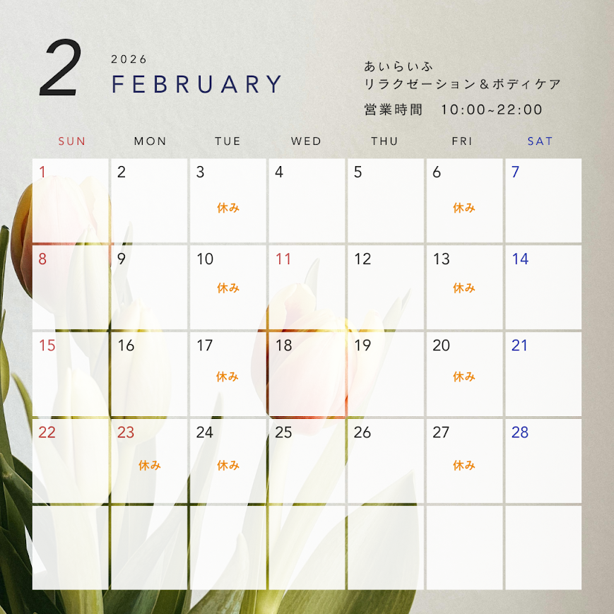 営業日は、掲載の2月営業カレンダーをご確認ください。